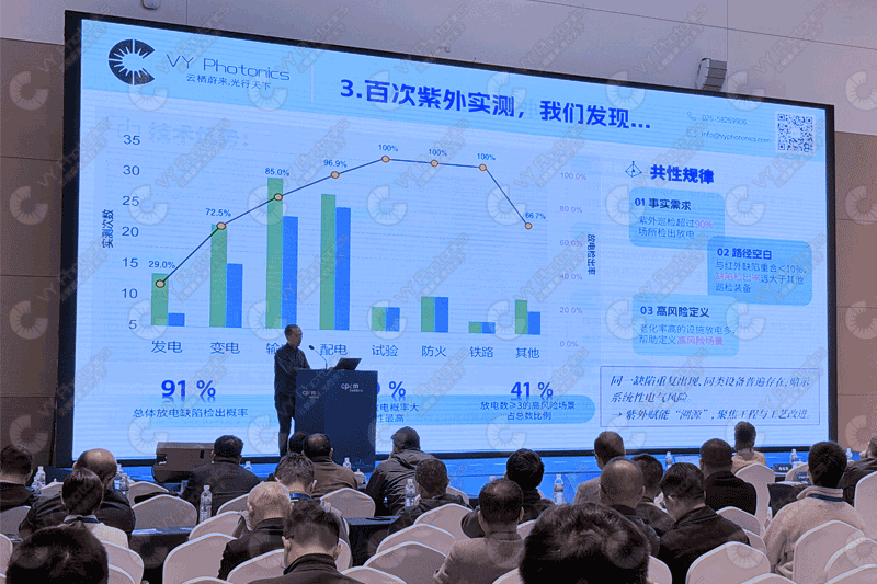4月23日下午14时30分,蔚云光电在论坛上进行了《从实践案例出发:紫外电力巡检的应用方案、价值锚点与发展趋势》的主题演讲,重点展示来自一线实战案例的紫外典型放电图谱,历经上百次发电、变电、输电、配电各环节真实场景检测案例积累与验证,覆盖多种电压等级和设备类型的典型放电形态。深度普及了紫外成像在电力运检中的不可替代价值。