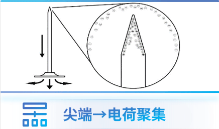 局部高场强使空气被电离,尖端与周围的电势差致使放电持续发生。