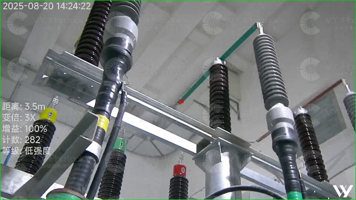 为彻底查明原因、排查设备隐患,建设单位邀请蔚云光电对该工程开展紫外成像检测服务,帮助建设单位定向消缺,使变电站能够安全投运,为新建电力工程验收树立了一道全新范式。